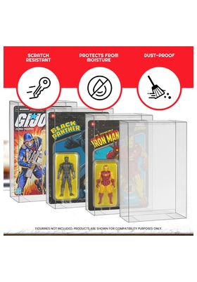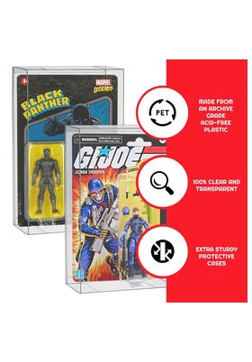 Evoretro presenta este pack de 10 fundas diseñadas para encajar las figuras estilo retro de Hasbro con su blister original. Tienen unas dimensiones interiores de 23 x 15,5 x 3 cm y está fabricadas con plástico PET libre de ácido de 0,40 mm de grosor. Permiten mantener las figuras libres de arañazos, suciedad y polvo. ATENCIÓN: No se incluyen las figuras que se ven en las imágenes, utilizadas para fines de presentación.