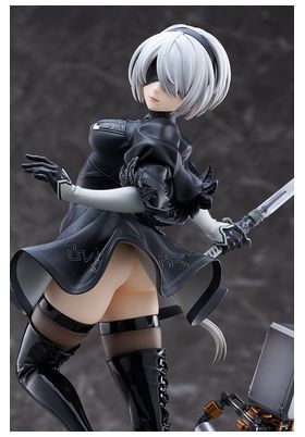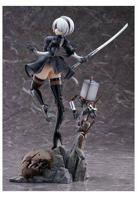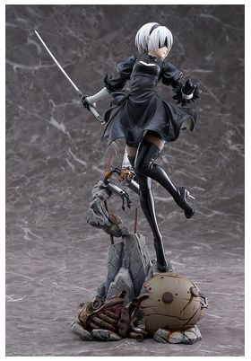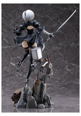 Max Factory presenta la estatua de 2B. Mide 28 cm a escala 1/7 y está basada en el personaje del videojuego "Nier:Automata Ver1.1a". Se muestra con el Contrato Virtuoso en la mano, sobre una base de escombros causados por una batalla contra una máquina.