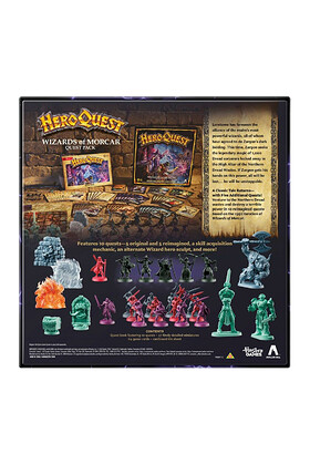 Hasbro Gaming presenta la expansión Hechiceros de Morcar para el juego de mesa HeroQuest. Continúa la épica aventura con 10 nuevos retos incluidos en su libro de misiones, 5 de ellas originales y otras 5 reimaginadas. En esta ocasión El Tomo de la Sabiduría ha pronosticado la alianza de los hechiceros más poderosos del reino, quienes han accedido a cumplir la oscura voluntad de Zargon. Esta vez, Zargon busca apoderarse de la legendaria magia de 1000 Hechiceros del Terror, oculta en el Gran Altar de los Páramos del Norte. Evita que Zargon obtenga el poder o será imparable!. Este pack de misiones está formado por 27x miniaturas detalladas (1x heroína maga, 1x minotauro, 1x Señor de la Tormenta, 1x Hechicero de Guerra, 1x Nigromante, 1x Alto Mago, 1x Artificiero, 1x Sir Ragnar, 3x barreras mágicas, 3x exploradores, 3x alabarderos, 3x ballesteros, 3x espadachines, 2x mímicos del terror y 2x gólems), 64x cartas de juego ilustradas, 1x hoja de losetas de cartón y 1x libro de misiones. Esta expansión añade nuevas posibilidades tácticas con tres conjuntos de hechizos inéditos que permiten crear barreras mágicas de hielo, fuego o piedra. Requiere el juego base HeroQuest o HeroQuest: El despertar (se venden por separado). Jugadores: 2-5, edad recomendada: 14+.