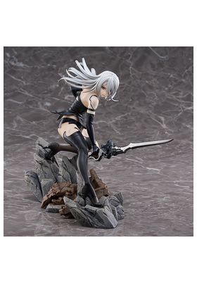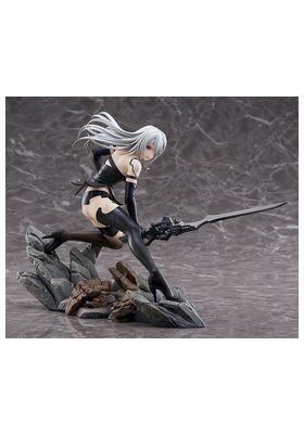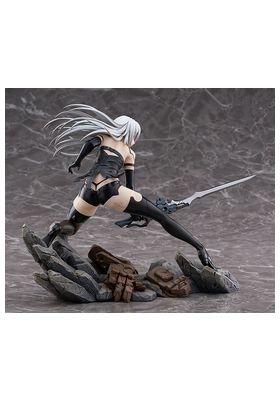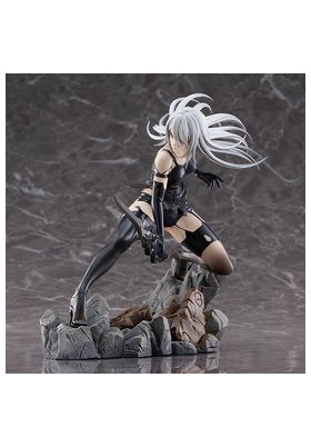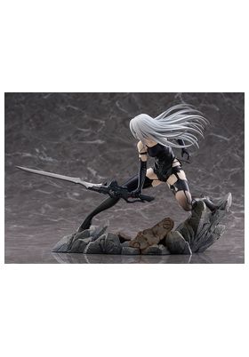 Max Factory lanza esta estatua escala 1/7 de A2, personaje de anime "NieR:Automata Ver1.1a". La figura representa a la androide de YoRHa modelo A2 en una pose dinámica, con su arma Type-40 Blade en mano. Se muestra con su melena al viento y las manchas de combate en su cuerpo. La base incluye rocas y restos de máquinas como parte del entorno. Fabricada en PVC, mide aproximadamente 20 cm de altura.