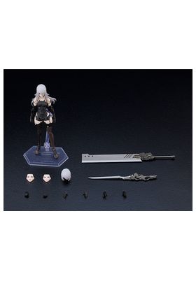 Del videojuego "Nier: Automata Ver 1.1a llega la figura de A2 a la colección Figma de Max Factory. Tiene una altura de 16 cm y contiene placas faciales (cara estándar, aprentando los dientes y gritando), una espada tipo 40 y su hoja tipo 40, una parte para el pelo, 6x pares de manos y 1x base soporte para su exhibición.