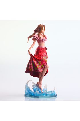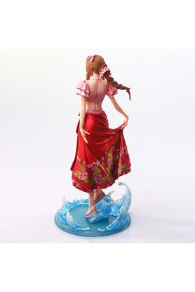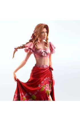Square Enix presenta dentro de la colección Static Arts la figura de Aeris Gainsborough del videojuego "Final Fantasy VII Rebirth" ataviada con traje de baño. La figura muestra al personaje en una pose relajada, con una base circular traslúcida que simula el movimiento de las olas. Los colores suaves del conjunto y los detalles del pareo y del peinado reflejan la calidez del personaje. Tamaño aproximado: 26 cm × 13 cm × 12 cm.