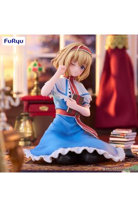 Furyu lanza la figura Noodle Stopper de Alice Margatroid, personaje de la serie de videojuegos "Touhou Project". Mide 10 cm y está elaborada en ATBC-PVC, se muestra de rodillas, guiñando el ojo con una pose tierna y su libro en la mano.