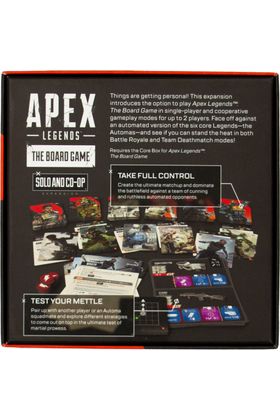 Esto ya es personal! Esta expansión te permite jugar a Apex Legends : El juego de tablero en los modos de juego solitario y cooperativo con hasta 2 jugadores.