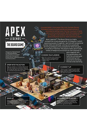 Apex Legends : El juego de tablero es un juego de miniaturas competitivo para 2-6 jugadores en el que escuadrones de Leyendas con habilidades y capacidades de combate extraordinarias se enfrentan en un campo de batalla cada vez más pequeño en busca de fama y gloria.
