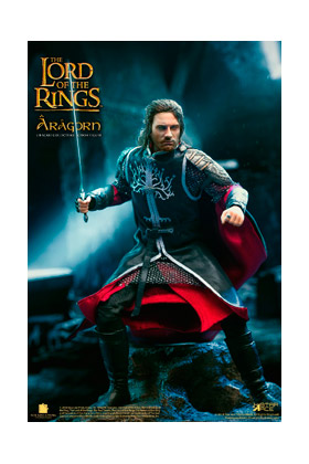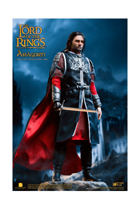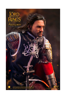 Star Ace presenta para la nueva serie de figuras Real Master Series, la figura articulada de Aragorn, hijo de Arathorn, llamado coronado como Rey Elessar, uno de los grandes héroes de la Tierra Media que ayudó en la búsqueda para destruir el Anillo Único y dirigió los ejércitos del hombre en la batalla contra el señor oscuro Sauron. Se trata de una figura a escala 1:8 de 22.5 cm, con una recreación auténtica del personaje de la película El Señor de los Anillos: El Retorno del Rey encarnado por el actor Viggo Mortensen. Ha sido pintada a mano para lograr sacar el más mínimo detalle. La figura incluye 5 manos intercambiables, una espada, una vaina, una capa, una armadura y pelo enraizado. La versión Deluxe viene con una base luminosa dinámica con forma de El Anillo.