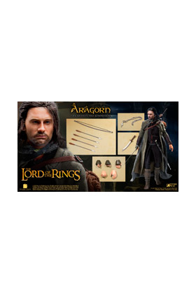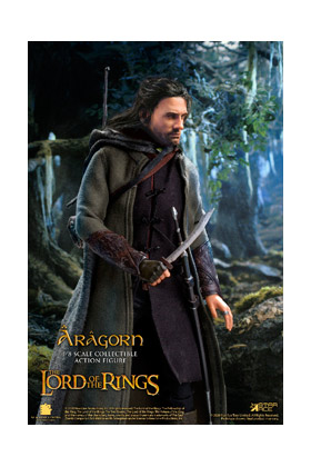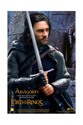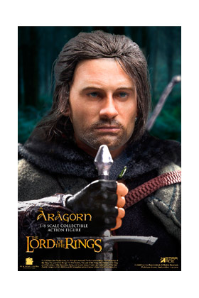 Star Ace presenta para la nueva serie de figuras Real Master Series, la figura articulada de Aragorn, hijo de Arathorn, llamado Strider por los Hobbits, uno de los grandes héroes de la Tierra Media que ayudó en la búsqueda para destruir el Anillo Único y dirigió los ejércitos del hombre en la batalla contra el señor oscuro Sauron. Se trata de una figura a escala 1:8 de 22.5 cm, con una recreación auténtica del personaje de la película El Señor de los Anillos: Las dos Torres encarnado por el actor Viggo Mortensen. Ha sido pintada a mano para lograr sacar el más mínimo detalle. La figura incluye 5 manos intercambiables, una espada, una vaina, un collar y un alfiler para la capa. La versión Especial incluye una daga élfica, una funda de la daga, además de una base soporte para exposición.