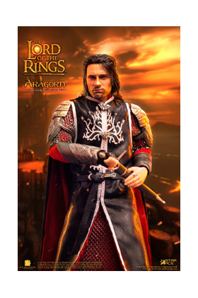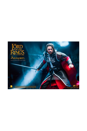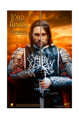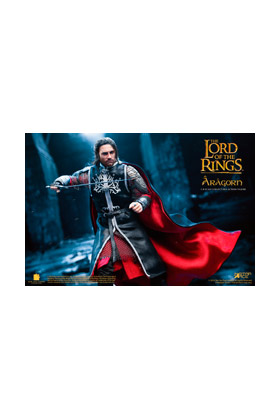 Star Ace presenta para la nueva serie de figuras Real Master Series, la figura articulada de Aragorn, hijo de Arathorn, llamado coronado como Rey Elessar, uno de los grandes héroes de la Tierra Media que ayudó en la búsqueda para destruir el Anillo Único y dirigió los ejércitos del hombre en la batalla contra el señor oscuro Sauron. Se trata de una figura a escala 1:8 de 22.5 cm, con una recreación auténtica del personaje de la película El Señor de los Anillos: El Retorno del Rey encarnado por el actor Viggo Mortensen. Ha sido pintada a mano para lograr sacar el más mínimo detalle. La figura incluye 5 manos intercambiables, una espada, una vaina, una capa, una armadura y pelo enraizado. La versión Normal viene con una base soporte para exposición.