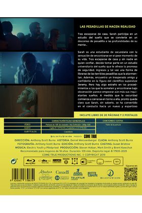 Sarah es una estudiante de secundaria con la sensación de encontrarse en el peor momento de su vida. Tras escaparse de casa y sin nadie en quien confiar, decide tomar parte en un estudio universitario del sueño que le ofrece la promesa de seguridad, ingresos y tal vez una forma de librarse de las terribles pesadillas que la atormentan. Además, encuentra un inesperado amigo y confidente en la figura del científico supervisor Jeremy. Pero hay algo extraño en los procedimientos a los que la someten y encontrarse bajo observación parece empeorar aún más sus inquietantes sueños. A medida que la oscuridad comienza a cerrarse en torno a ella, pronto queda claro que Sarah, sin saberlo, se ha convertido en el conducto hacia un nuevo y espantoso descubrimiento