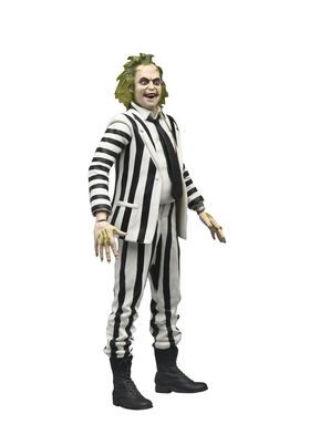 Neca presenta, dentro de la colección Scale Action, la figura de Beetlejuice Black and White Striped Suit. Mide 18 cm y está basada en el personaje de la película de Tim Burton "Beetlejuice" (o "Bitelchús" en España). Incluye 1x manual y 1x serpiente. Se presenta en un blíster. UNIDADES LIMITADAS.