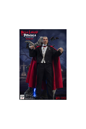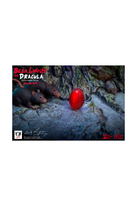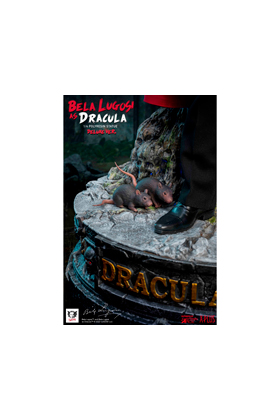 Star Ace presenta esta nueva y magnífica figura a escala 1/4 de Bela Lugosi en su papel como Drácula. Bela Lugosi creó la icónica imagen de Drácula que ha inspirado miedo y deleite a los fans del terror durante casi un siglo. Esta magnífica figura a escala mide 48 cm de alto y muestra a Lugosi con una réplica en tejido real de su esmoquin clásico y una capa forrada de rojo sujeta al cuello. Sus brazos están extendidos con las manos listas para atacar o seducir a su desprevenida víctima. La elaborada pantalla del diorama tiene una lápida y un misterioso árbol muerto con el nombre del personaje en relieve alrededor de la parte inferior de la base. La versión de lujo cuenta con una función de iluminación y un extra añadido. Los ojos parecen normales hasta que se iluminan de color rojo sangre, simulando la sed de sangre que siente Drácula cuando acecha a una víctima. El árbol de la base del diorama brilla con la luz sobrenatural que sale por las grietas de su tronco. La base también incluye un anillo extraíble y ponible con un detallado escudo de Drácula.