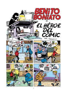 Continúan las andanzas del eterno estudiante Benito Boniato con su familia y sus amigos en esta edición que recupera por primera vez la serie completa y ordenada cronológicamente, partiendo de una cuidada restauración y un nuevo color. El presente volumen comienza con la última historia larga de la serie, El héroe del cómic, en la que Benito se reencarna en personajes de distintos géneros, desde el lejano Oeste hasta la ciencia ficción, ocasión que aprovechan los autores para parodiar y homenajear a los grandes héroes de la historia del cómic.