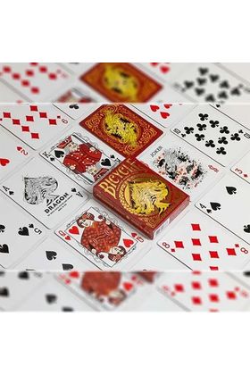 Cartamundi presenta, dentro de la colección Bicycle, esta baraja de poker de Red Dragon Las figuras y los dorsos están diseñadas de forma personalizada inspirados en los dragones. Acabado Air Cushion. Estuche premium con foll dorado.