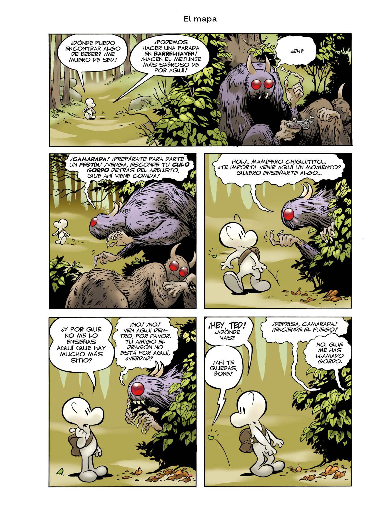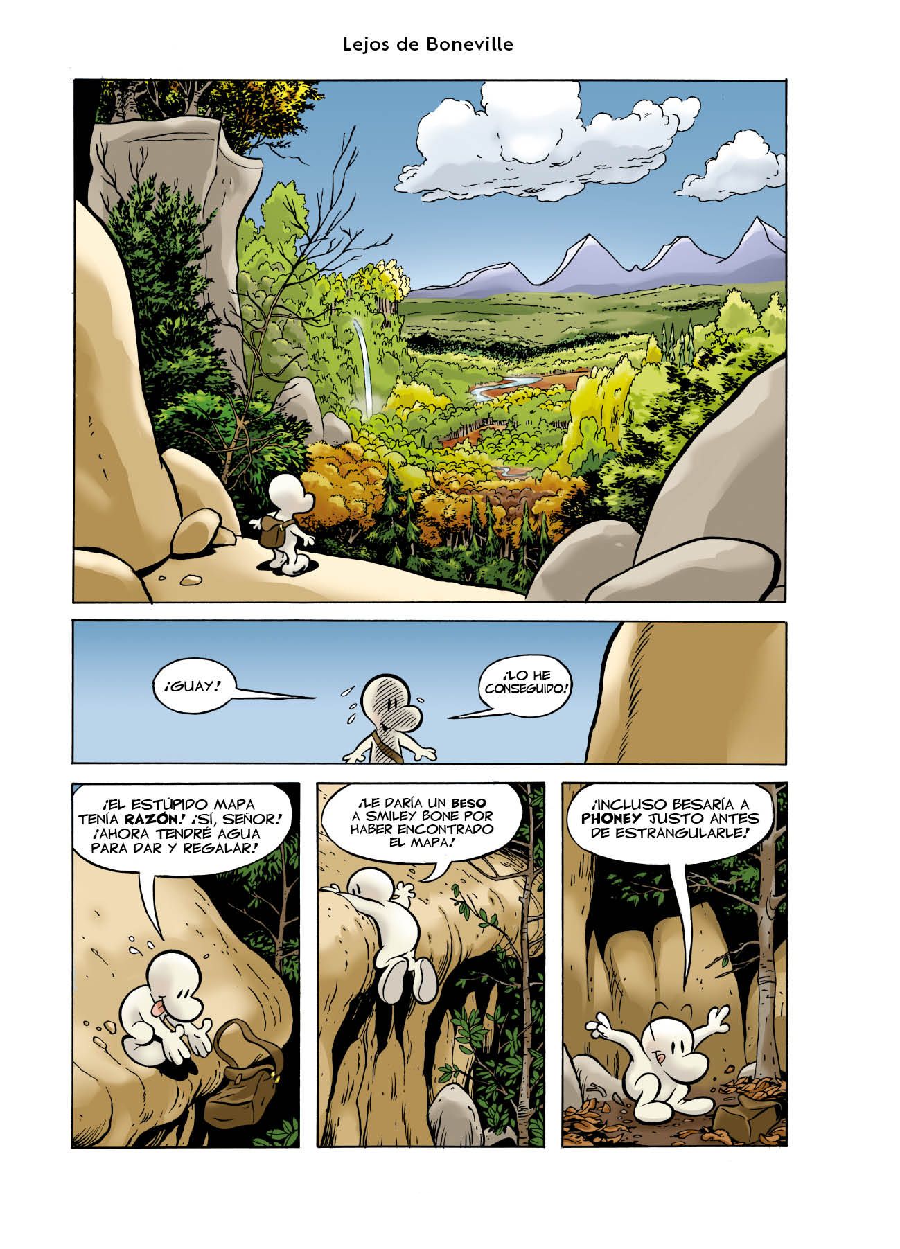 Bone -empeñado en ver siempre el lado positivo de las cosas-), expulsados de Boneville, se pierden en un enorme y