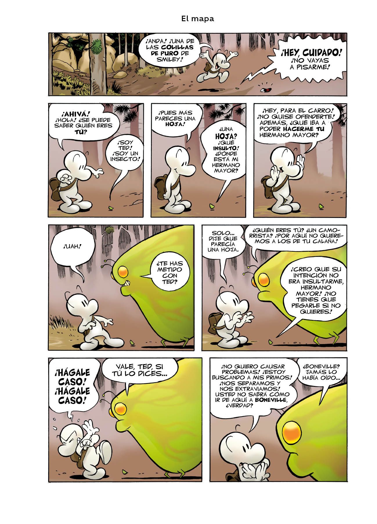 Bone da comienzo cuando tres primos (Fone Bone -fan irredento de Moby Dick y con un valor inversamente proporcional a su estatura-, Phoney Bone -su avaricia es la causa de muchos de los problemas de los tres primos- y Smiley