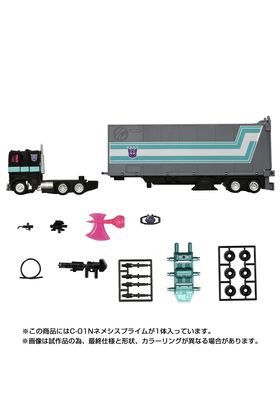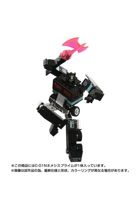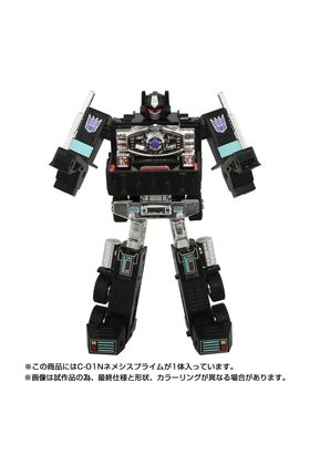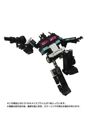 Takara Tomy lanza dentro de la serie Missing Link la figura coleccionable C-01N de Nemesis Prime, la siniestra contraparte de Optimus Prime en el universo clásico de "Transformers". Esta edición original japonesa presenta un acabado premium con articulación mejorada y posibilidad de conversión entre modo robot y camión. El tráiler incluido se acopla al vehículo o se transforma en estación de combate. El set incluye: 1x tráiler, 1x hacha del Verdugo, 1x cañón de fusión, 1x manguera, 1x bomba de suministro de energía, 1x adaptador, 1x figura Giza con 6x neumáticos, 4x misiles, 1x Corazón de Cybertron, 1x tarjeta de colección del personaje en japonés y 1x pegatina secreta" de color rojo transparente que se puede superponer en la gráfica impresa en la parte posterior del embalaje. El robot tiene impreso un emblema "secreto" que muestra el símbolo de Decepticon Corps al calentarlo con el dedo. Los detalles mecánicos están cuidadosamente pintados en toda la figura, que además cuenta con un puerto posterior compatible con soportes de exhibición (se venden por separado). Se presenta en una caja original con instrucciones en japonés. UNIDADES LIMITADAS.