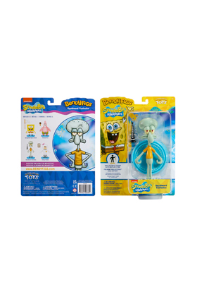 Noble presenta, dentro de su línea de productos dedicada a 'Bob Esponja', esta figura flexible de Calamardo Tentáculos, el malhumorado vecino de Bob y Patricio, y cajero del Crustáceo Crujiente. Mide unos 18 centímetros de alto e incluye un  como accesorio y una base soporte para su exposición.
