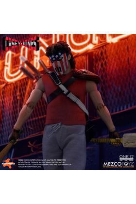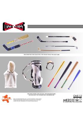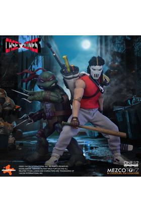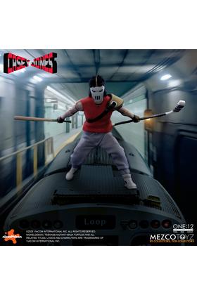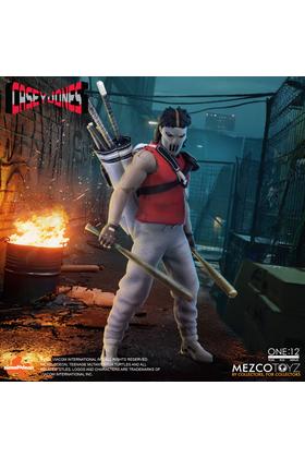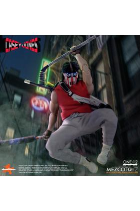 Mezco Toyz presenta dentro de su línea One:12 Collective la figura articulada de Casey Jones, inspirada en la apariencia del personaje del universo "Teenage Mutant Ninja Turtles". Esta figura tiene una altura aproximada de 17 cm, cuenta con más de 32 puntos de articulación y tiene un montón de detalles pintados a mano. Viene acompañada de 3x placas faciales, 10x manos adicionales y 1x bolsa de golf para transportar su arsenal improvisado compuesto por: 1x bate de cricket, 3x sticks de hockey (uno de ellos de portero), 2x palos de golf y 4x bates de béisbol (uno de ellos roto). Su atuendo incluye 1x camiseta de punto roja sin mangas, 1x pantalón de chándal, 1x par de zapatillas deportivas, 1x protector de hombros y 1x sudadera blanca con capucha. También incluye una base circular con logo y un brazo articulado. Se presenta en una caja ilustrada.