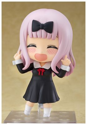 Toytec vuelve a presentar, dentro de la colección Nendoroid, la figura de Chika Fujuwara. La figura basada en el anime "Kaguya-sama: Love is War" mide 10 cm. Incluye placas faciales (expresión estándar, expresión de llanto y sonriente), su sombrero de "Love Detective" y una parte especial para la mano que puede ser combinada con la Nendoroid Kaguya Shinomiya para mostrarlas cogidas de la mano (se vende por separado). La hoja interior de cartón del packaging funciona como fondo de la sala de consejo de estudiantes, y se incluyen varias placas de texto diferentes de escenas de la serie.