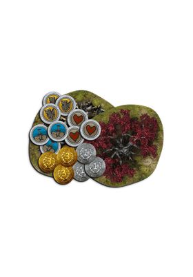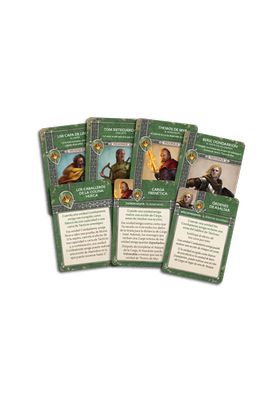 CONTENIDO: 1 libro de reglas, 4 cartas de unidad Combatiente, 6 cartas de Vínculo, 2 cartas de unidad No Combatiente, 26 cartas de Tácticas, 1 carta de reglas especiales, 12 cartas de Asedio, 24 cartas de Misión, 10 cartas de Objetivo, 1 carta de referencia, 1 carta de muros de castillo, 1 regla de alcance, 81 fichas de cartón, 1 tablero de Tácticas, 10 dados D6 de la Hermandad, 1 dado D3 de seis caras blanco, 4 bandejas de movimiento, 54 miniaturas, 10 elementos de terreno y 3 muros de castillo.