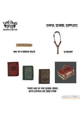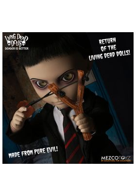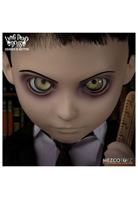 Mezco Toyz presenta, dentro de la colección Living Dead Dolls, la figura de Damien. Mide 25,5 cm y está basada en el personaje principal de la película de su mismo nombre. Cuenta con 18 puntos de articulación y viste su característico uniforme colegial. Incluye 2x placas faciales, 2x ojos, 5x manos intercambiables, 1x chaqueta de uniforme desmontable, 1x camisa, 1x corbata, 1x pantalón de uniforme, 1x par de calcetines, 1x abrigo de quita y pon, 1x gorra desmontable, 1x sombrero de copa, 1x tirachinas con banda elástica y funda de cuero, 1x regla y 3x libros con correas de cuero. Se presenta en una caja con forma de ataúd.