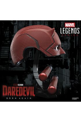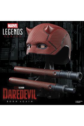Hasbro presenta, dentro de su colección Marvel Legends Series, este conjunto de réplicas premium a escala 1:1 formado por máscara y bastón, ambos inspirados en los que usa el protagonista de la serie de Disney+ "Daredevil: Born Again". La máscara es de talla única y tiene un diseño detallado con textura realista. Cuenta con sus distintivos cuernos y con lentes tintadas en rojo. El bastón de combate está formado por 2x piezas que alcanzan los 71,4 cm de longitud cuando se unen. Se incluye una base expositora que permite exhibir tanto la máscara como el bastón (unido o separado en dos piezas), aunque también resultan ideales como complemento de cosplay. Se presenta en caja cerrada ilustrada. UNIDADES LIMITADAS.