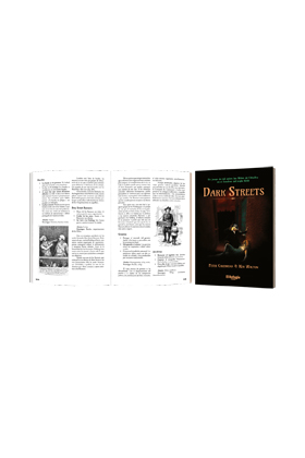 Dark Streets incluye todo lo que necesitas para jugar. Utiliza Renaissance Deluxe: un sistema d100 simplificado que se basa en OpenQuest. Será, por tanto, familiar para cualquiera que haya jugado a La llamada de Cthulhu.