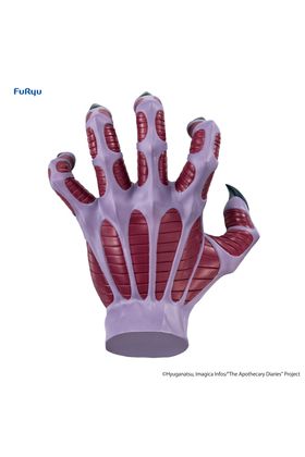 Furyu presenta dentro de su línea Noodle Stopper la figura de una mano de demonio, inspirada en la serie de manga japonesa "Hell Teacher: Jigoku Sensei Nube". Mide aproximadamente 9 cm de alto y está fabricada en ATBC-PVC. Es de color lila con texturas en rojo y uñas afiladas. Ideal para colocar sobre vasos o recipientes como cubierta.