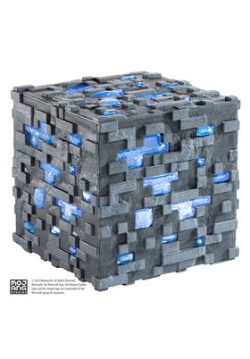 Noble Collection presenta, dentro de la colección Minecraft Collector Replica, esta réplica de Diamond Ore. Las texturas en forma de gema brillan con luz LED en dos modos, parpadeo o iluminación constante. Se activa (o desactiva) al tocarlo. Tiene una altura de unos 10 cm y funciona con 3 pilas AAA (no incluidas).