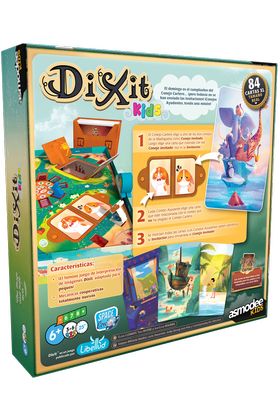 Este domingo se celebra la fiesta de cumpleaños del Conejo Cartero, pero las invitaciones aún no se han enviado y el tiempo corre. En Dixit Kids los jugadores cooperan para invitar al mayor número de conejos posible, interpretando imágenes adaptadas para los más pequeños y utilizando mecánicas cooperativas nuevas. Cada turno, el Conejo Cartero elige un invitado y una carta relacionada, mientras los Conejos Ayudantes deben encontrar la invitación correcta entre el correo. Una versión del famoso Dixit especialmente diseñada para peques y compatible con otros juegos de la saga. Contenido: 1 tablero, 8 peones de conejo, 32 piezas de puerta, 1 peón de Conejo Cartero, 1 peón de Sol, 84 cartas Dixit y portacartas. Idioma: Español. Número de jugadores: 3 a 6. Edad recomendada: 6 años o más. Tiempo de partida: 25 minutos.