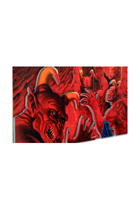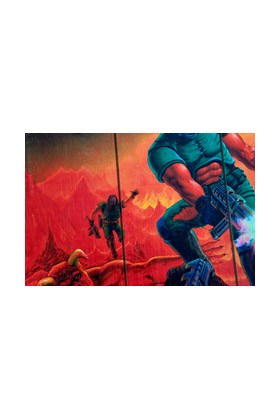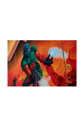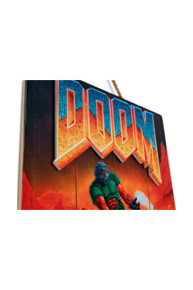 WOODARTS 3D es una colección de carteles de madera creada por Doctor Collector en colaboración con Bethesda licenses. Elaborados a mano e impresos a todo color directamente sobre madera, WOODARTS 3D tiene la particularidad de presentar motivos resaltados en láminas de madera previamente recortada, y encolada o clavada sobre la superficie, generando un efecto tridimensional con un toque artesanal. Al estar impresos sobre madera real, la beta de ésta puede influir en el aspecto final del cartel, dotando a cada WOODART 3D de peculiaridades gráficas que los diferencian entre ellos y los convierten en un artículo único. Este producto se basa en una imagen de la portada del videojuego "DOOM Classic". Mide 30 x 40 cm y viene listo para ser colgado mediante un cordel.