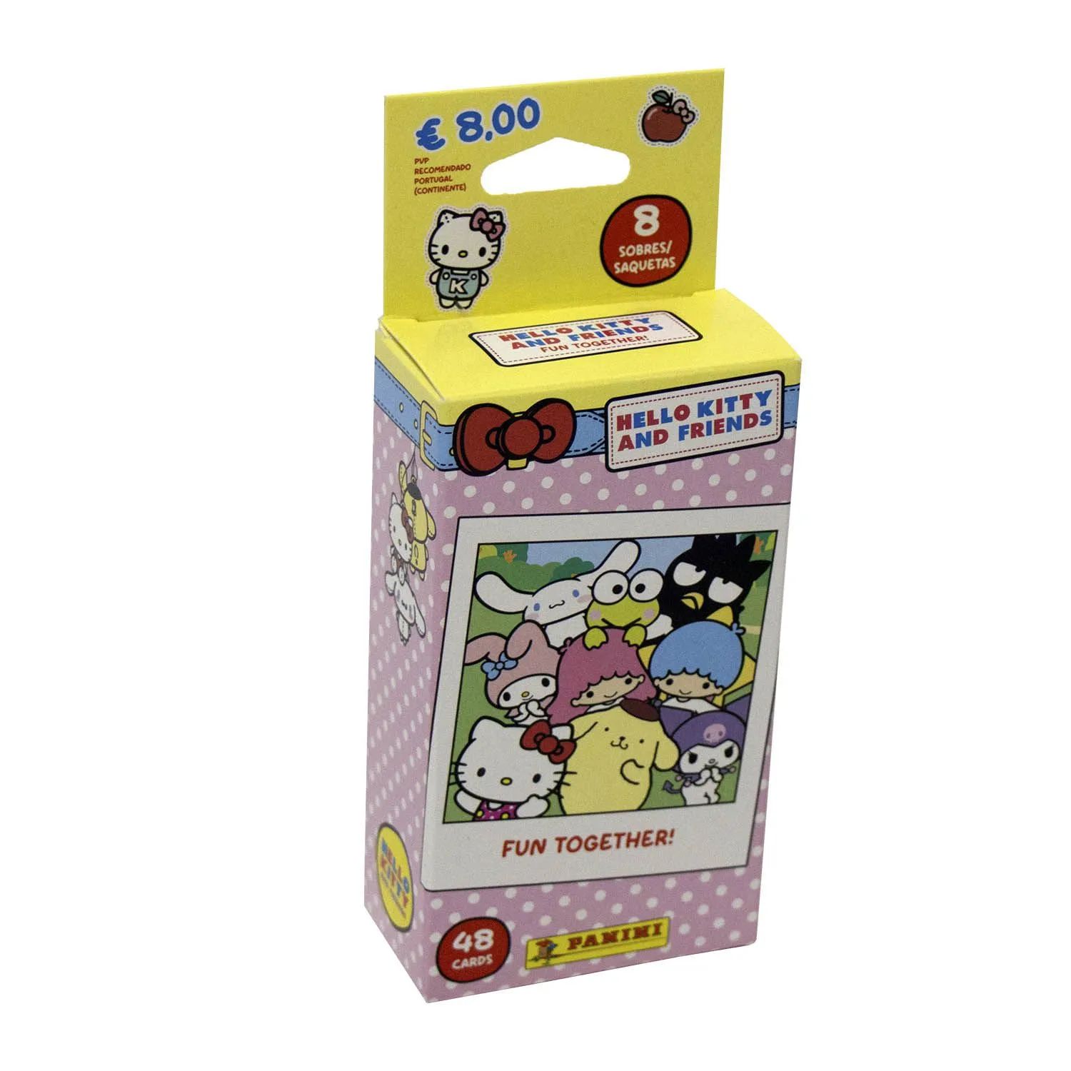 El Blister de 8 sobres la colección de cartas HELLO KITTY AND FRIENDS - Fun Together TC PANINI te permitirá conseguir 8 sobres de la colección con 48 cartas.