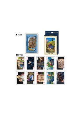 Ensky presenta, dentro de la colección Studio Ghibli, esta baraja de cartas francesa inspiradas en personajes de la película "El castillo ambulante". Tienen unas medidas de 9,5 x 6,5 cm.
