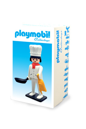 Plastoy presenta la nueva línea de figuras de Playmobil dentro de la colección Collection Nostalgie. Esta estatua de El Cocinero está hecha en resina y mide unos 25 cm de alto. Incluye cucharón y pollo y una base soporte.