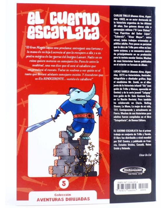 EL CUERNO ESCARLATA fue el primer trabajo en conjunto de Trillo y Varela. El libro fue distribuido a nivel mundial por SAF Cómics, y publicado en Francia, Estados Unidos, Canadá, Reino Unido y Holanda."
