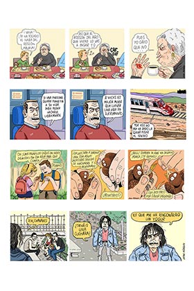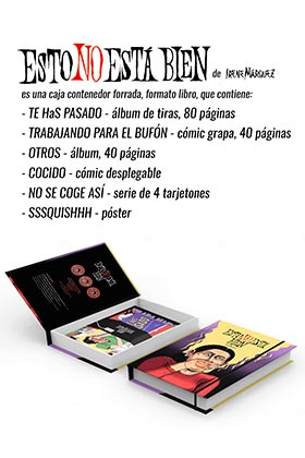 ESTO NO ESTÁ BIEN recoge una serie de historietas tan brillantes como crueles, que por su disparidad de formatos pedían a gritos un traje a medida. Una caja contenedor con cuatro cómics y varias láminas, una reivindicación de la risa desinhibida, del disparate y del reírse de lo que no toca.