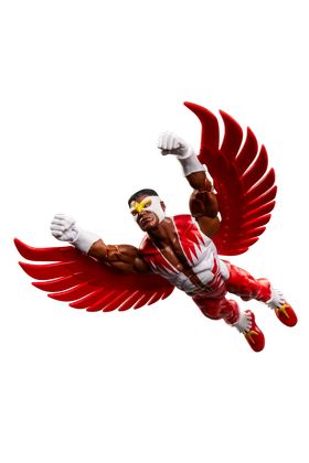 Hasbro presenta en su línea Marvel Legends Series la figura retro de Falcon, basada en su aparición en la saga de cómics "Secret Wars" de Marvel. Con una altura de 15 cm y cuenta con múltiples puntos de articulación. Incluye 2x alas, 1x Redwing, 1x set de manos alternativas y 1x escudo como el de las figuras de los años 80. En este caso, la lámina lenticular del escudo cambia entre el rostro de Sam Wilson y su alter ego Falcon. Se presenta en blíster retro ilustrado, evocando la colección original. UNIDADES LIMITADAS.