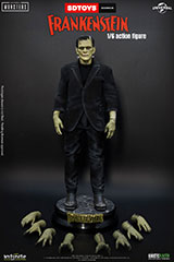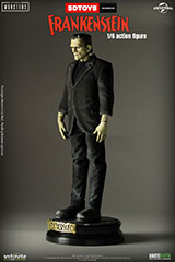 Con licencia de Universal en colaboración con SD Toys, Infinite Statue & Collectibles y Kaustic Plastik, presentamos con orgullo la figura de acción de Frankenstein a escala 1/6. Una auténtica obra maestra para coleccionistas, con detalles realistas y dioramas exclusivos que recrean sus escenas más icónicas. La figura estándar incluye: 8 pares de manos, una chaqueta negra desgastada, pantalones negros desgastados, una camisa negra, un par de botas magnéticas, una base magnética, cadenas y grilletes. Todo presentado en un empaque de lujo.