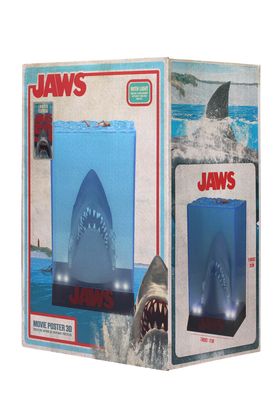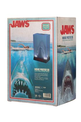 Celebra medio siglo de terror cinematográfico con nuestro exclusivo Jaws Póster 3D de Película edición 50 Aniversario! Esta figura mejorada captura la escalofriante escena de la icónica película de 1975, donde el gigantesco tiburón blanco emerge de las profundidades. Ahora, con una base iluminada, esta edición especial realza cada detalle de la figura, dando vida a la escena de suspenso como nunca antes.