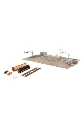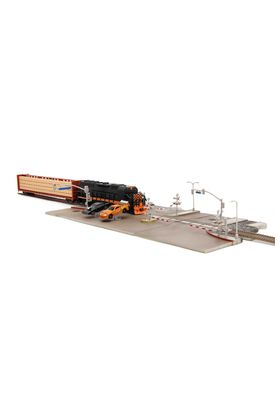 Jada Toys presenta, dentro de la colección Nano Scene, esta maqueta del paso a nivel. Tiene unas medidas de 13x20x18 cm y recrea la mítica escena de la carrera final de la película "The Fast & the Furious" ("A todo gas" en España), cuando los protagonistas cruzan el paso a nivel casi de forma simultánea al tren. La maqueta es una reproducción a escala e incluye las vías, la locomotora, las barreras del paso a nivel, 2x vehículos de metal de 4 cm (el Dodge Charger de Dom y el legendario Toyota Supra de Brian) con ruedas de dirección libre y neumáticos de goma y 2x bases para mostrarlos en pleno salto. Edad mínima recomendada 8 años.
