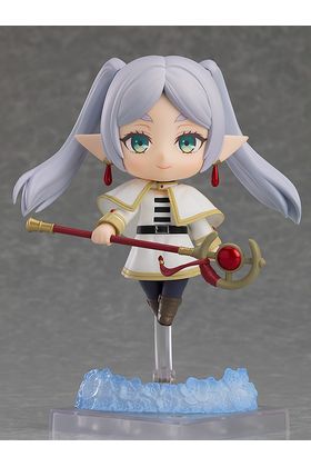La maga Frieren regresa a la colección Nendoroid con esta figura de 10 cm basada en la protagonista del anime "Frieren: Beyond Journey's End". Además de la figura se incluyen tres placas faciales adicionales (cara neutral, concentrada y chibi) y diversos accesorios (bastón, grimorio, flor, hierba de luna azul y maleta). Puedes exponerla junto a la Nendoroid de Fern (se vende por separado).