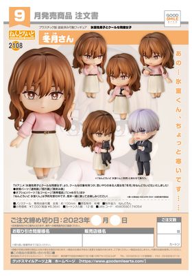 Good Smile Arts Shanghai presenta dentro de su línea de productos la figura de Fuyutsuki-San del anime The Ice Guy and His Cool Female de la colección Nendoroid. La figura mide 10 centímetros e incluye placas faciales (cara estandar, sonrojada y sonriente) y partes opcionales (café en lata, teléfono móvil y su gato Nyamero).