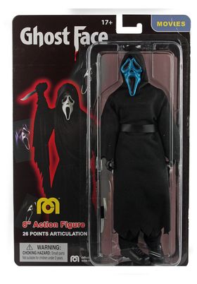 Mego presenta este surtido de colores de Ghost Face, basada en la saga Scream. Se trata de una figura articulada hecha en PVC con ropa hecha a medida. Mide unos 20 cm de alto.