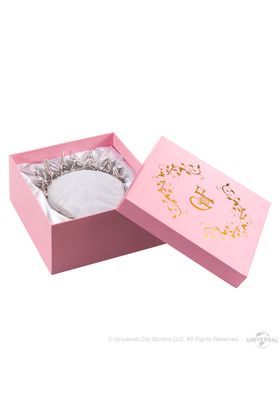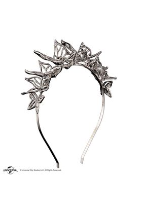 The Noble Collection presenta esta réplica de la tiara de boda de Glinda, tal como aparece en la película "Wicked: For Good". Elaborada en metal y gemas de plástico iridiscentes, esta tiara de tamaño adulto mide aproximadamente 5 cm de alto y está adornada con brillantes mariposas plateadas. Se presenta en una elegante caja de coleccionista rosa con monograma dorado G&F , forrada en su interior con satén blanco. Ideal para exposición.