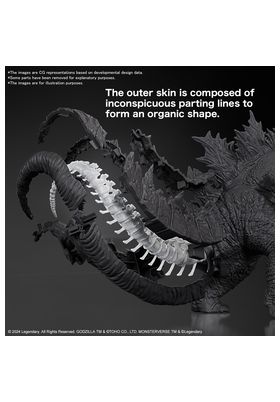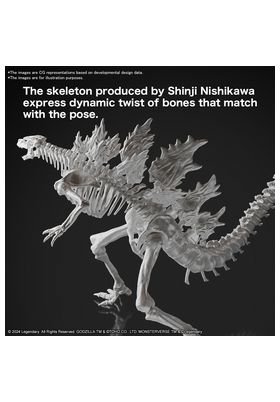 Bandai Hobby presenta el model kit de Godzilla (2024). Está basado en la película "Godzilla x Kong: The New Empire". Mide unos 25,5 cm de largo y puedes exponer sólo el esqueleto o con el cuerpo recubriendo el esqueleto.