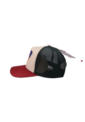 CYP Brands presenta dentro de su línea de produtos de Dungeons & Dragons esta gorra con trasera de rejilla. Tiene un fondo blanco roto y un dragón. La solapa es roja y la zona de rejilla negra.