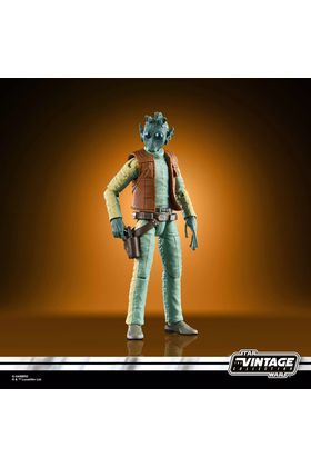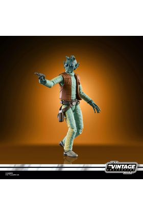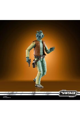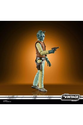 Hasbro suma a la colección The Vintage Collection la figura de Greedo, inspirada en su aparición en la película ""Star Wars: A New Hope"" (""Star Wars: Una nueva esperanza"" en España). Con una altura de 9,5 cm, esta figura destaca por su diseño premium y detalles precisos que capturan al célebre rodiano. Dispone de múltiples puntos de articulación en cabeza, brazos y piernas para recrear escenas clásicas. Incluye 1x bláster como accesorio y se presenta en un blíster vintage ideal para exhibición. UNIDADES LIMITADAS."
