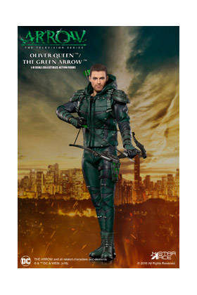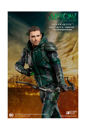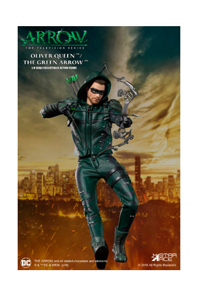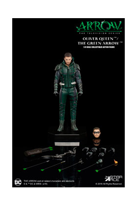 Star Ace presenta esta figura de PVC basada en Green Arrow, un billonario que se convierte en un encapuchado héroe, en su versión cinematográfica. Esta figura articulada está hecha con una expresión facial precisa y una textura de piel detallada, pintada a mano. La figura mide unos 22.5 cm e incluye dos cabezas intercambiables, 6 manos intercambiables, traje de batalla, armadura y botas. Además viene con un arco, carcaj con 6 flechas, 5 flechas adicionales con diferente cabezal y una base soporte para exposición.
