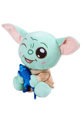 Simba Toys presenta el peluche de Grogu con una lagartija azul, inspirado en la serie "Star Wars: The Mandalorian ". Mide 25 cm y muestra al personaje sosteniendo 1x lagartija, con tejidos suaves y gran nivel de detalle.