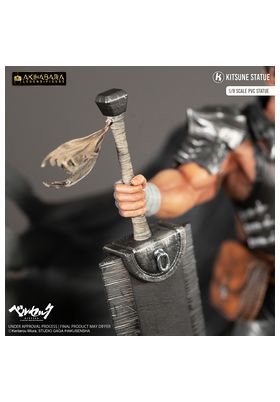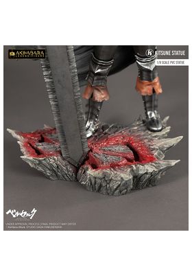 Kitsune presenta una nueva estatua de Guts. Tiene una altura aproximada de 30 cm a escala 1/8 y pertenece a la colección Akihabara Legend. Está basada en el protagonista del anime "Berserk" y representa a dicho personaje en posición de reposo con la espada Matadragones después de la batalla, con una mirada decidida y serena. Destacan las partes metálicas de su armadura y su capa ondeando al viento. Descansa sobre una base que simula un suelo rocoso con una marca de sacrificio de un rojo brillante como la sangre. Está fabricada con PVC a partir del diseño de Sacha Delon y de la escultura de Pierre Marie Albert.